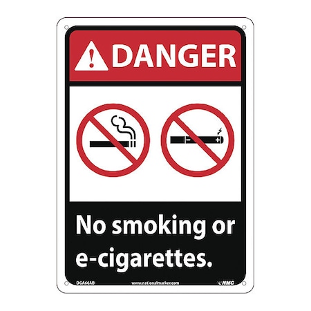 DGA66AB National Marker Danger Caution Sign, No Smoking or E-Cigarettes, 14 Inches x 10 Inches, Aluminum 040