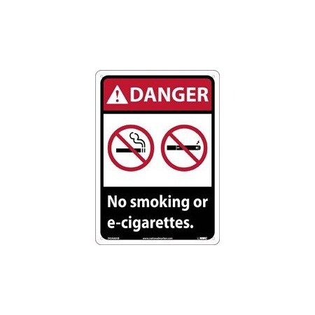 NMC DGA66PB National Marker Danger Caution Sign, No Smoking or E-Cigarettes, 14 Inches x 10 Inches, Pressure Sensitive Vinyl