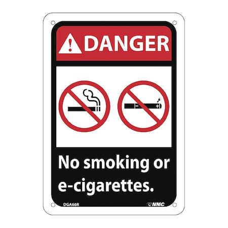 NMC DGA66R National Marker Danger Caution Sign, No Smoking or E-Cigarettes, 10 Inches x 7 Inches, Rigid Plastic