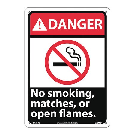 NMC DGA6AB DANGER - No smoking, matches or open flames Sign - 10 in. x 14 in., Red/Black Text on White, Aluminum Danger Sign with Graphic