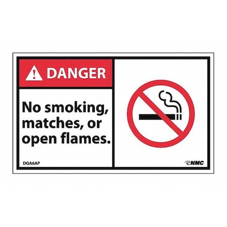 NMC DGA6AP 3"x 5"ANSI Sign w/Legend:Danger - No Smoking Matches Or Open Flames (Graphic), 25 Packs of 5 pcs