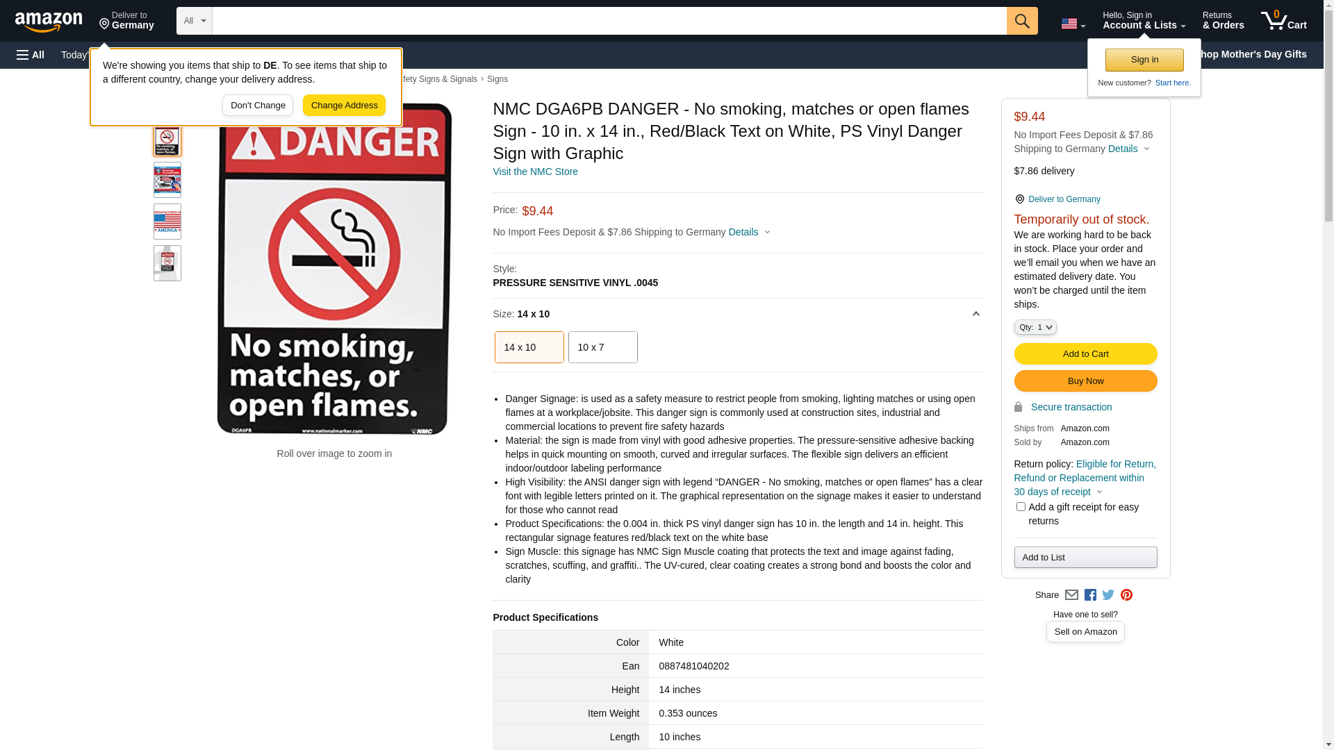- Product Specifications: the 0.004 in. thick PS vinyl danger sign has 10 in. the length and 14 in. height. This rectangular signage features red/black text on the white base