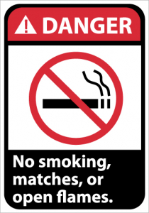 - High Visibility: the ANSI danger sign with legend “DANGER - No smoking, matches or open flames” has a clear font with legible letters printed on it. The graphical representation on the signage makes it easier to understand for those who cannot read