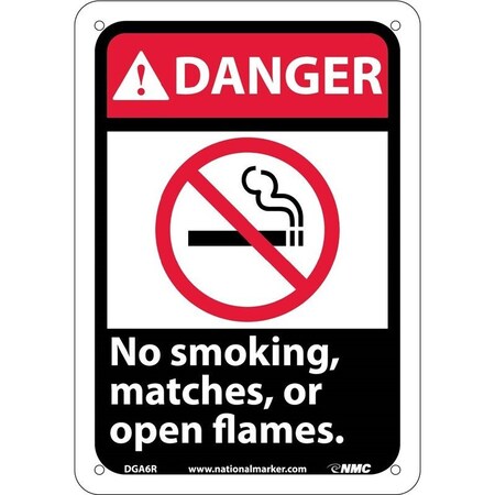 NMC DGA6PB 14"x 10"ANSI Sign w/Legend:Danger - No Smoking Matches Or Open Flames (w/Graphic), Pack of 50 pcs