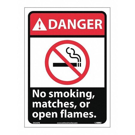 NMC DGA6PB DANGER - No smoking, matches or open flames Sign - 10 in. x 14 in., Red/Black Text on White, PS Vinyl Danger Sign with Graphic