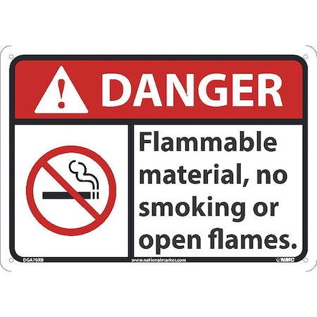 NMC DGA70RB Danger - Flammable Material no Smoking or Open Flames Sign - 14 in. x 10 in., Red/Black Text on White, Plastic Danger Sign with Graphics