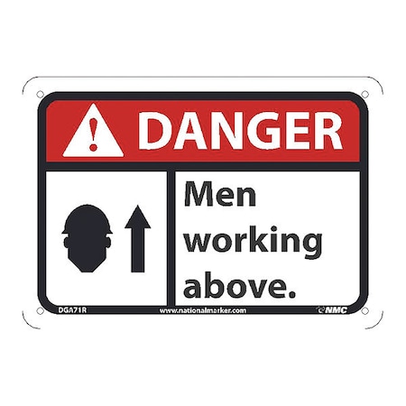 NMC DGA71R Danger - Men Working Above Sign - 10 in. x 7 in. Rigid Plastic Danger Sign with Graphic, White/Black Text on Red/White Base