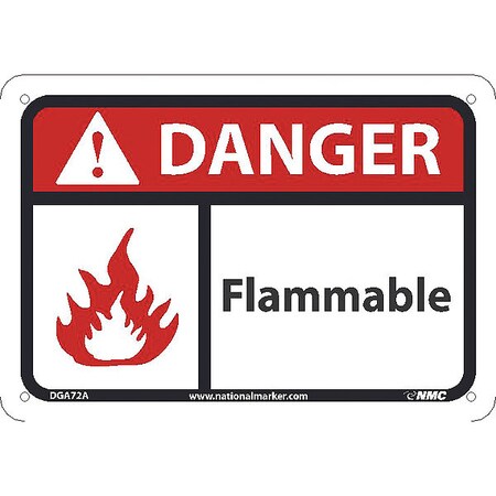 NMC DGA72A Danger - Flammable Graphic Sign - 10 in. x 7 in., Red/Black Text on White, Aluminum Danger Sign