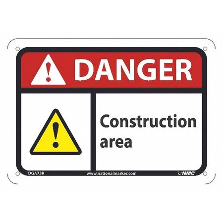 NMC DGA73R Danger - Construction Area Sign - 10 in. x 7 in. Rigid Plastic Danger Signage with Safety Alert Symbol, Black/White Text on White/Red Base