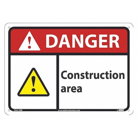 NMC DGA73RB Danger - Construction Area Sign - 14 in. x 10 in. Rigid Plastic Danger Signage with Safety Alert Symbol, Black/White Text on White/Red Base