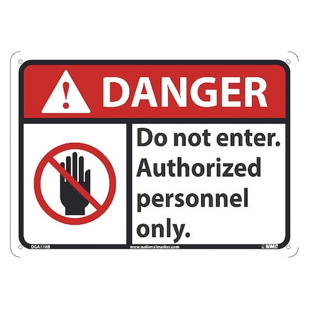 NMC DGA77AB Danger - Do not Enter Authorized Personnel only Sign - 14 in. x 10 in., Aluminum Signage with Graphics, Black Text on Yellow Base