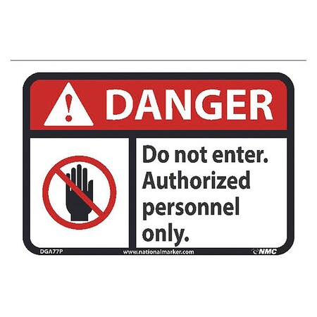 NMC DGA77P Danger - Do not Enter Authorized Personnel only Sign - 10 in. x 7 in., PS Vinyl Signage with Graphics, Black Text on Yellow Base