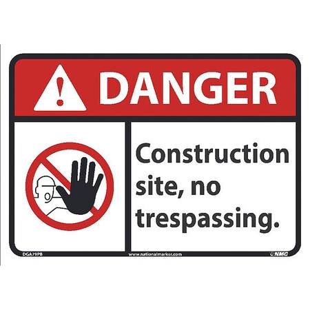 NMC DGA79PB Danger - Construction site no trespassing Sign - 14 in. x 10 in. Vinyl Danger Signage with Graphic, Black/White Text on White/Red Base