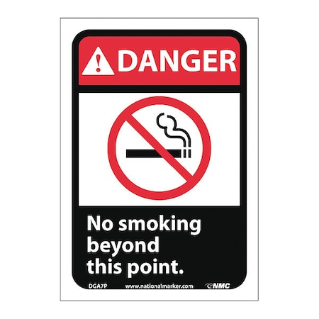 NMC DGA7P ANSI Sign, Legend "DANGER - No smoking beyond this point" with Graphic, 7" Length x 10" Height, Pressure Sensitive Vinyl, Black/Red on White