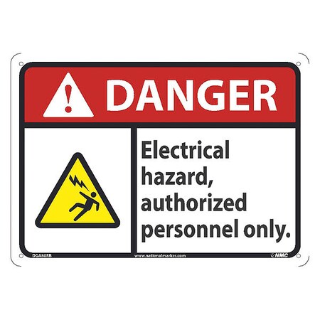 NMC DGA80RB Danger - Electrical Hazard, Authorized Personnel only Sign - 14 in. x 10 in, Rigid Plastic Signage with Graphics , White