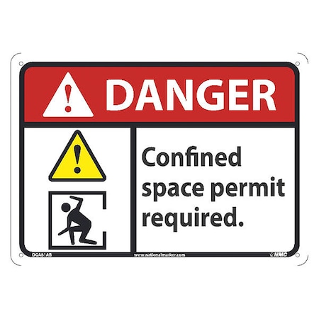 NMC DGA81AB Danger - Confined Space, Permit Required Sign - 14 in. x 10 in. Aluminum Danger Sign with Graphics, Black/White Text on White/Red Base