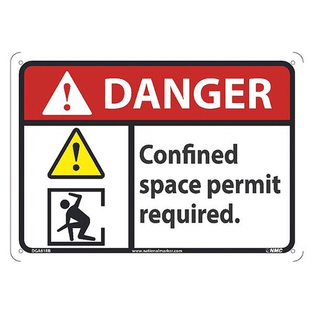 NMC DGA81RB Danger - Confined Space, Permit Required Sign - 14 in. x 10 in. Vinyl Danger Sign with Graphics, Black/White Text on White/Red Base