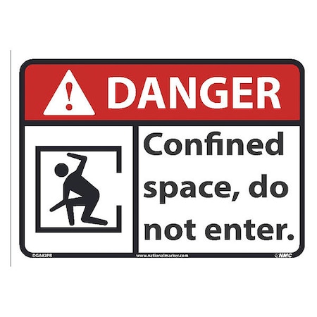 NMC DGA82PB Danger - Confined Space, do not Enter Sign - 10 in. x 7 in. Vinyl Danger Sign with Graphics, Black/White Text on White/Red Base