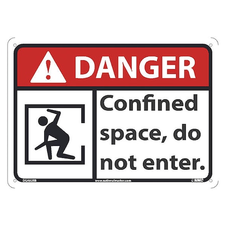 NMC DGA82RB Danger - Confined Space, do not Enter Sign - 14 in. x 10 in. Plastic Danger Sign with Graphics, Black/White Text on White/Red Base