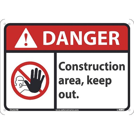 NMC DGA83RB Danger - Construction Area Keep Out Sign - 14 in. x 10 in. Rigid Plastic Danger Sign with Graphic, Black/White Text on White/Red Base