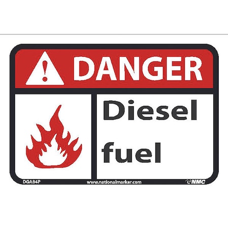 NMC DGA84P Danger Diesel Fuel Sign - 10 in. x 7 in. Adhesive Backed Vinyl Danger Sign with Graphic, White/Black Text on Red/White Base