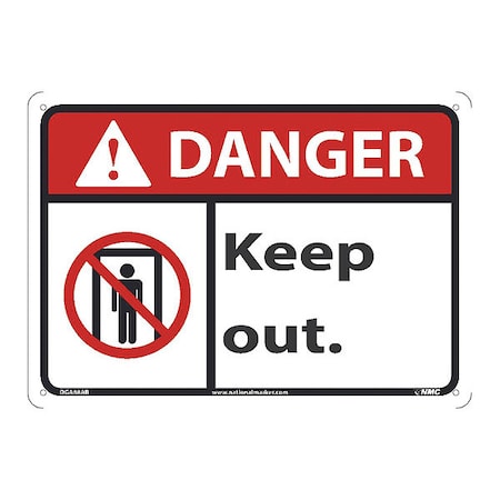 NMC DGA88AB Danger - Keep Out Sign - 14 in. x 10 in., Aluminum Sign with Graphic, Black/Red Text on White Base