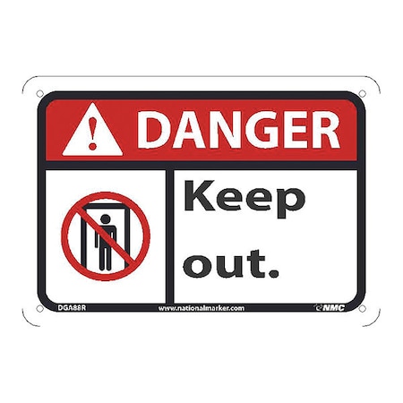 NMC DGA88R Danger - Keep Out Sign - 10 in. x 7 in., Plastic Sign with Graphic, Black/Red Text on White Base