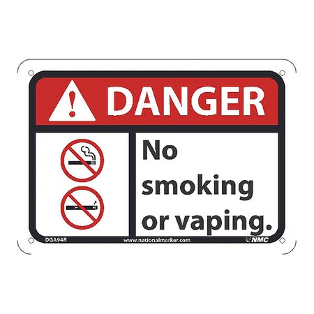 NMC DGA94R Danger - No Smoking or Vaping Sign - 10 in. x 7 in., Plastic Danger Sign with Graphics, Red/Black Text on White