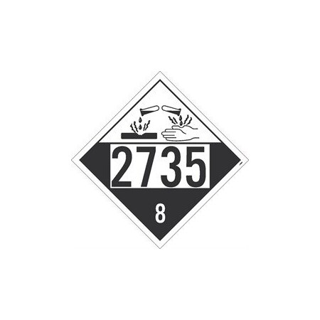 DL120P10, Placard "Corrosive 2735 8", 10x10, Pressure Sensitive Vinyl .0045, Pack 25