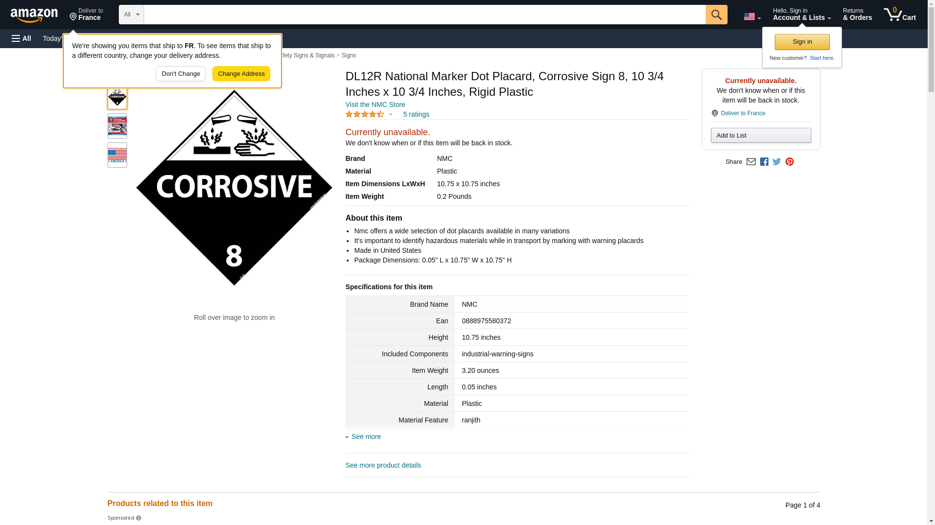 NMC DL12R, Dot Placard (Pack of 10 pcs)