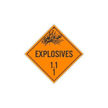 Placard, Explosives 1.1 1, 10.75X10.75, Pressure Sensitive Vinyl .0045, Pack 10