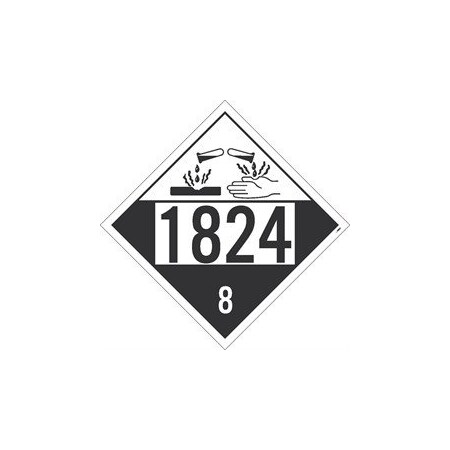 DL147BTB10, DOT Placard Sign, Sodium Hydroxide, 1824 8 , 10 X 10 , Tag Board, Card Stock, Pack 10 Corrosive materials can cause serious bodily harm. Prevent a terrible accident by distinctly marking such materials with our 1824 8 DOT Placard sign.
