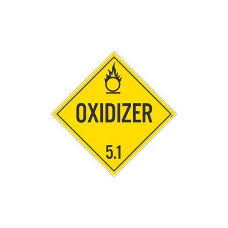 Placard, Oxidizer 5.1, 10.75X10.75, Pvc, Flexible Pvc, .015 Unrippable Vinyl, Pack 50