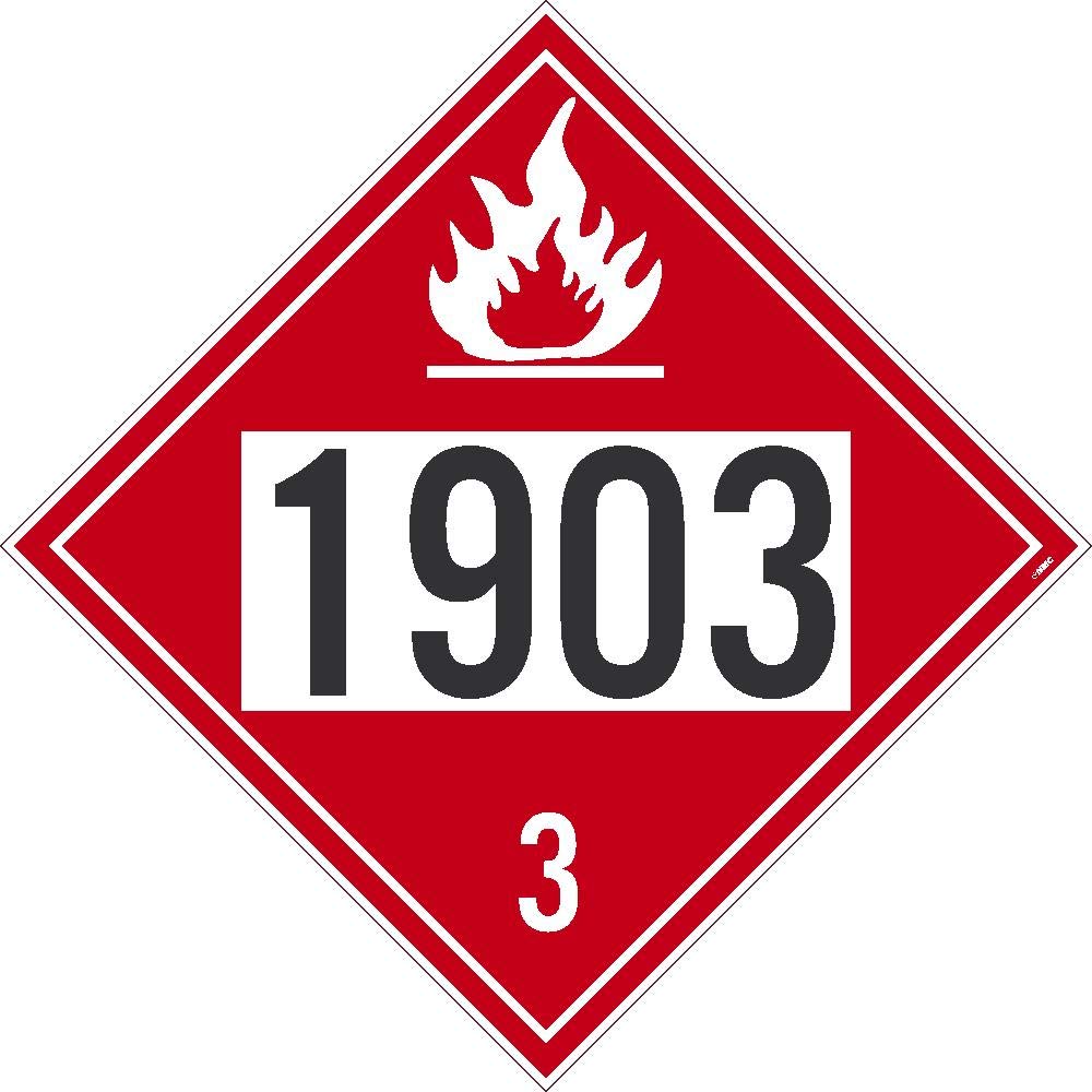 DL177BUV100, DOT Placard Sign Flammable 1903 3 , 10.75 x 10.75 Unrippable Vinyl 100 pcs Four Digit 1903 Placard Features: UV Resistant Chemical Resistant Graffiti Proof