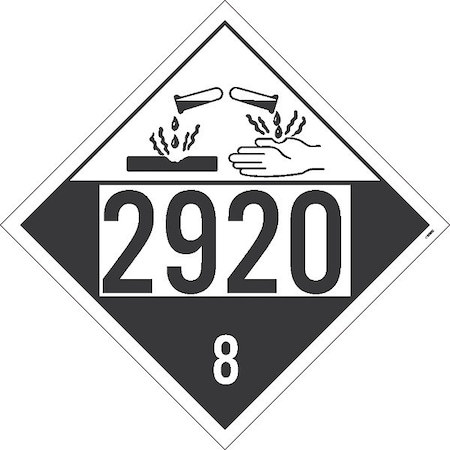 Dot Placard Sign, 2920 8 Corrosive, Material: Pressure Sensitive Removable Vinyl .0045