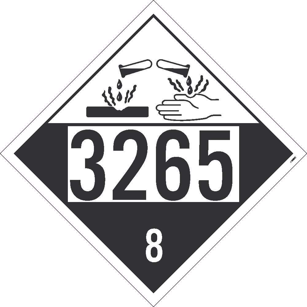 DL187PR100, DOT Placard Sign Corrosive 3265 8 , 10.75 x 10.75 , Removable Vinyl 100 pcs Features: UV Resistant Chemical Resistant Graffiti Proof