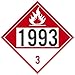 DL400PR100, DOT Placard Sign Flammable 1993 3 , 10.75 x 10.75 , Removable Vinyl 100 pcs Features: UV Resistant Chemical Resistant Graffiti Proof