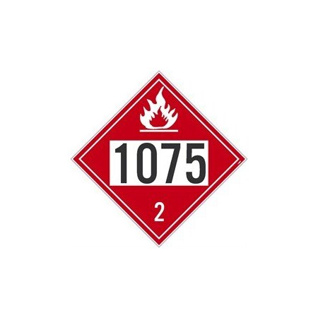 NMC DL42BUV25 Safety Sign Placard, Petroleum, Four Digit 1075, 10.75X10.75, PVC, Flexible PVC.015 Unrippable Vinyl, Pack 25