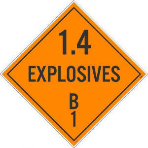 Dot Placard Sign, 1.4 Explosives B1, Pk50