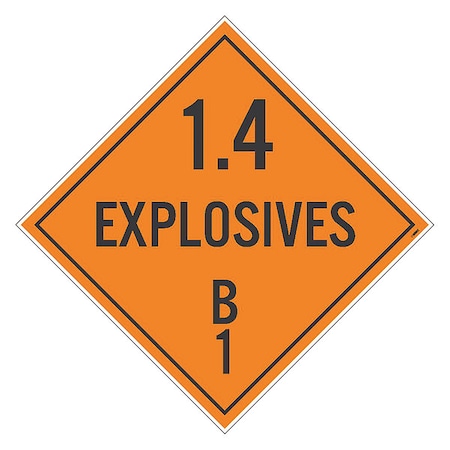 Placard, 1.4 Explosives B1, 10.75X10.75, Tag Board, Card Stock, Pack 50