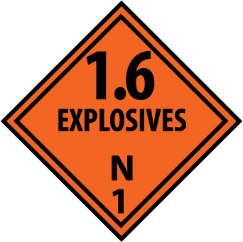 DOT Placards & Holders; Type: Placard ; Legend: 1.6 Explosive N ; Message or Graphic: Message Only ; Material: Pressure-Sensitive Vinyl ; Compliance Specifications: DOT 49 CFR 172.519; Hazardous Class 1 ; Placard Coating: Sign Muscle.