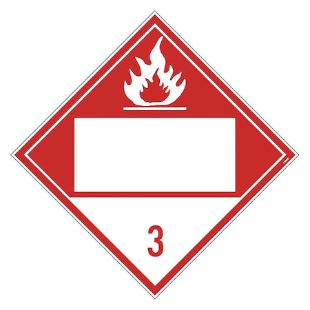 Placard, Flammable 3, Blank, 10.75X10.75, Removable Ps Vinyl, Pack 25