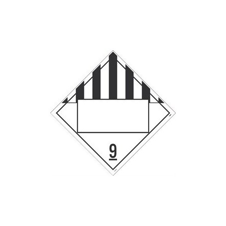 Placard, Miscellaneous Goods, Class 9, Blank, 10.75X10.75, Pressure Sensitive Vinyl .0045, Pack 50