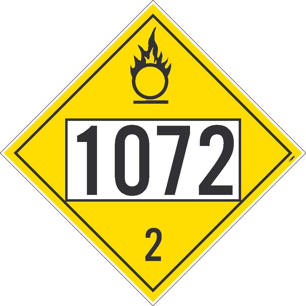 NMC DL70BPR100 Safety Sign Placard, Oxygen, Four Digit 1072, 10.75X10.75, Removable Ps Vinyl, Pack 100
