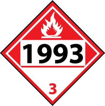 Dot Placard Sign, 1993 3, Flammable Liquid, Background Color: Red on White