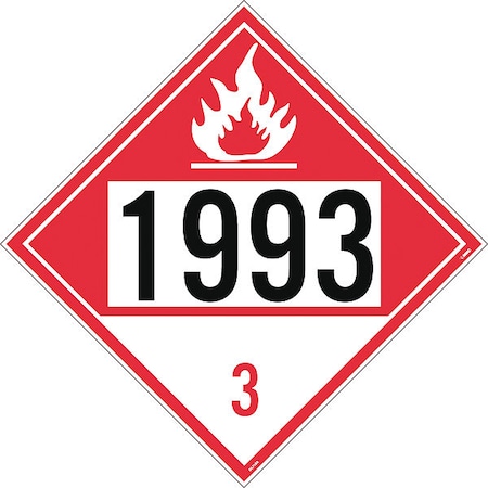 DL73BR50, DOT Placard Sign, Four Digit 1993 , 10 x 10 , Rigid Plastic, Pack 50 Keep others informed of flammable, combustible liquids. Post our 1993 3 DOT Placard sign on your carriers to notify passersby of the substance being carried.