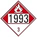 Placard, Flammable, Four Digit 1993, 10.75X10.75, Pvc, Flexible Pvc, .015 Unrippable Vinyl, Pack 50