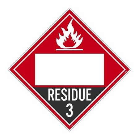 Residue 3 Flammable Liquids Blank Dot Placard Sign, Material: Rigid Plastic