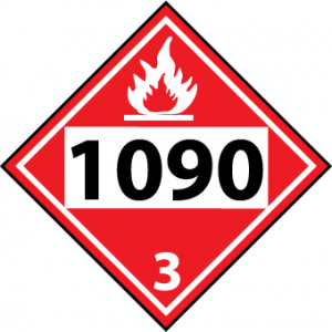 DOT Placards & Holders; Type: Placard ; Legend: 1090 ; Message or Graphic: Message & Graphic ; Material: Rigid Plastic ; Compliance Specifications: DOT 49 CFR 172.519; Hazardous Class 3 ; Placard Coating: Sign Muscle.