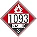 NMC DL84BPR100 Safety Sign Placard, Residue 3 Four Digit 1993, 10.75X10.75, Removable Ps Vinyl, Pack 100